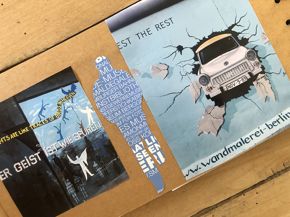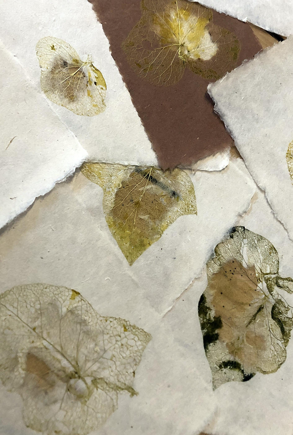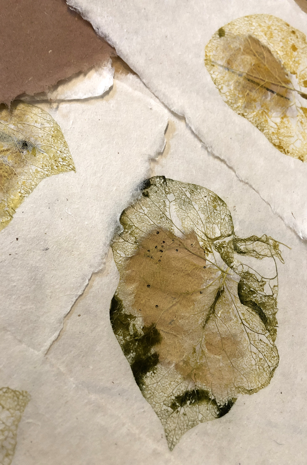 Nous avons exploré et expérimenté les nombreuses possibilités qu’offre la « gelli plate » ou « gel press » : empreintes végétales, utilisation de pochoirs, transfert d’image…