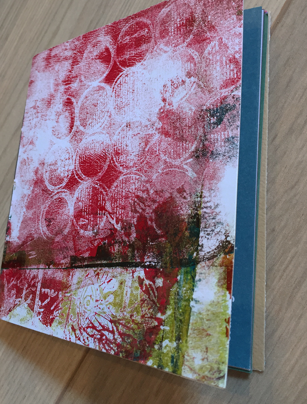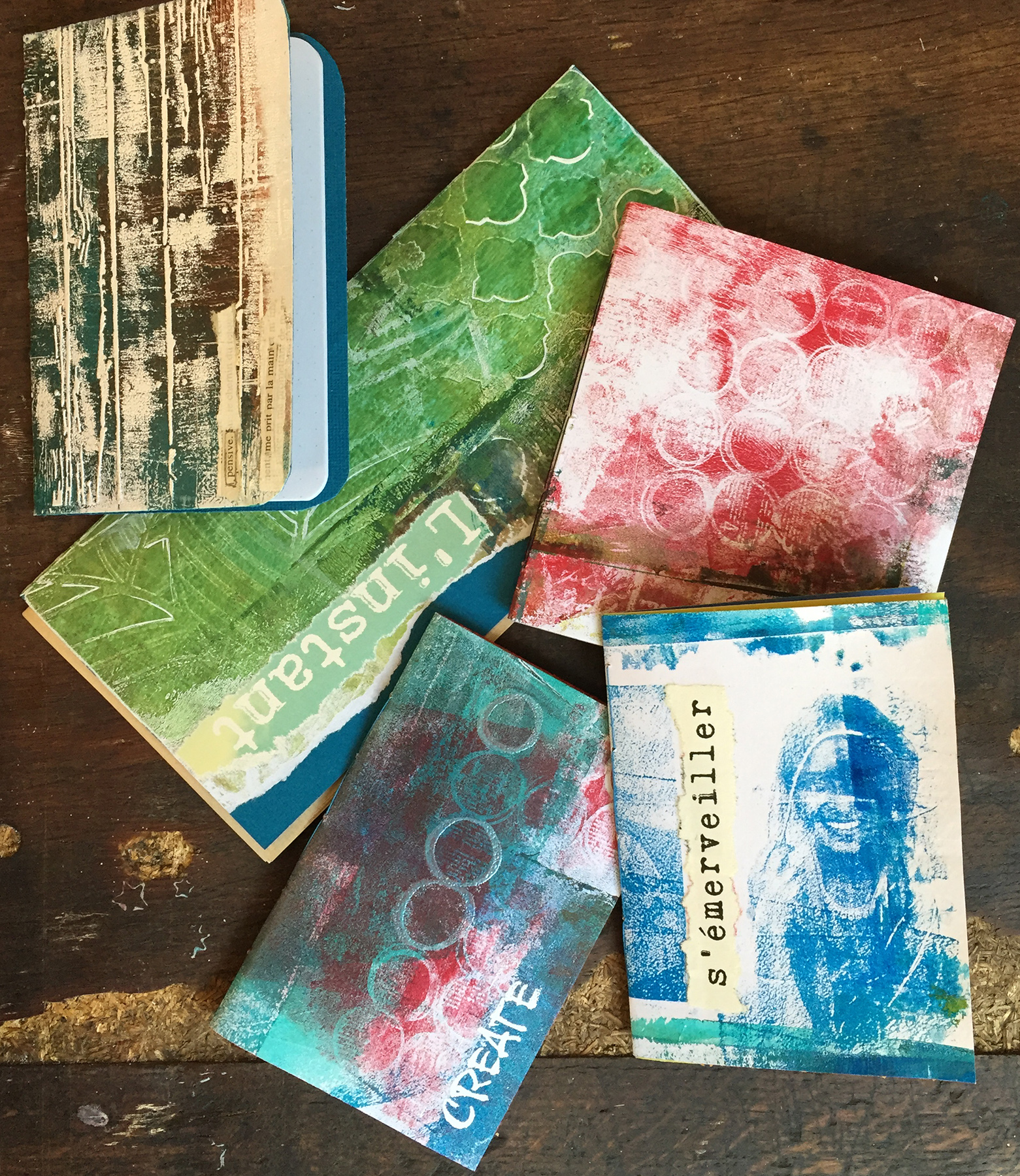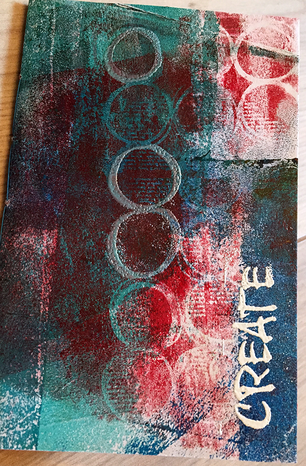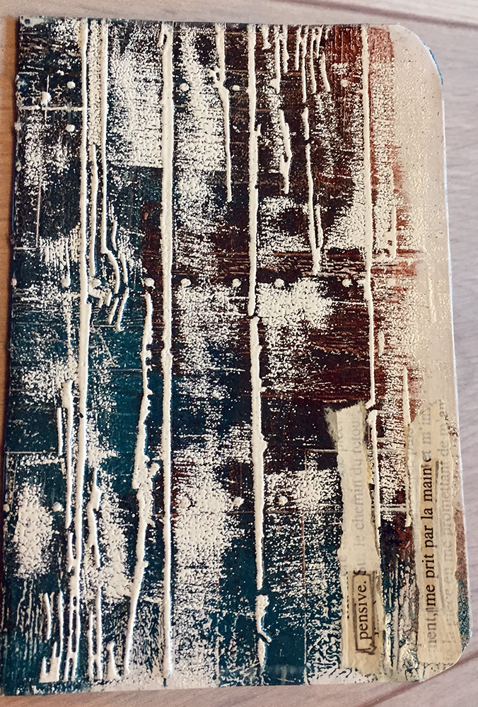 Après avoir réalisé des fonds avec la « gelli plate » en février, je propose ce mois-ci de les utiliser pour créer des couvertures de carnets.