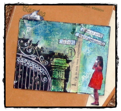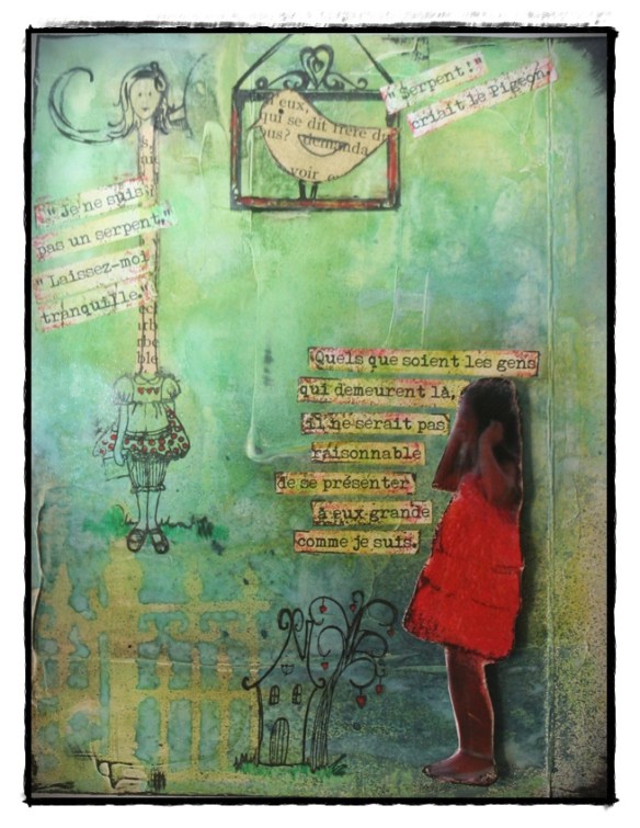images trouvées sur le net, tampons Studio2Mers, gesso, encres… et le rouge qui se retrouve de page en page…