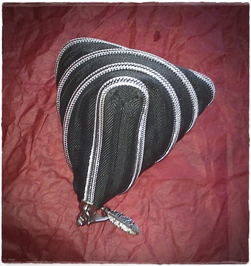 Pendant les fêtes, j’ai reçu un un petit paquet de mon amie SAN, lorsque je l’ai ouvert je me suis demandé ce que c’était et puis je me suis dit : une fermeture éclair ça se ferme, non ? Voilà le résultat :